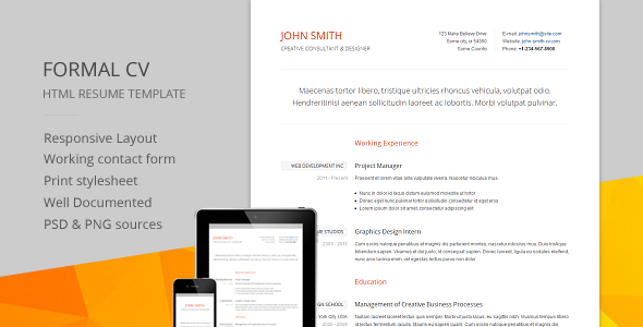 Your resume, to be effective, needs to be consistent, concise, and clear and easy to read. Formal CV – Responsive CV / RESUME template is just that.